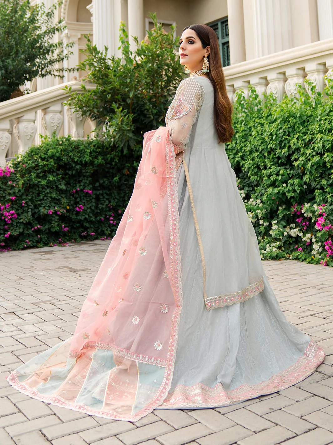 Adelina luxury collection by shah jahan Ready to wear. Our signature Collection-a symphony of opulence and fashion-forward design. Each dress is a masterpiece, meticulously crafted to make you feel regal at any event. Elegance is an only beauty that never fades. Drape your self with warmth gray luxury Embroidered dress with a delicate Interplay of 3mm sequence and the shimmering embrace of Color full thread is a tribute to luminosity. Intricate embroidery featuring enchanting. Adorned delicate adda work on neckline also Gown. That reflect on your dreams scape..