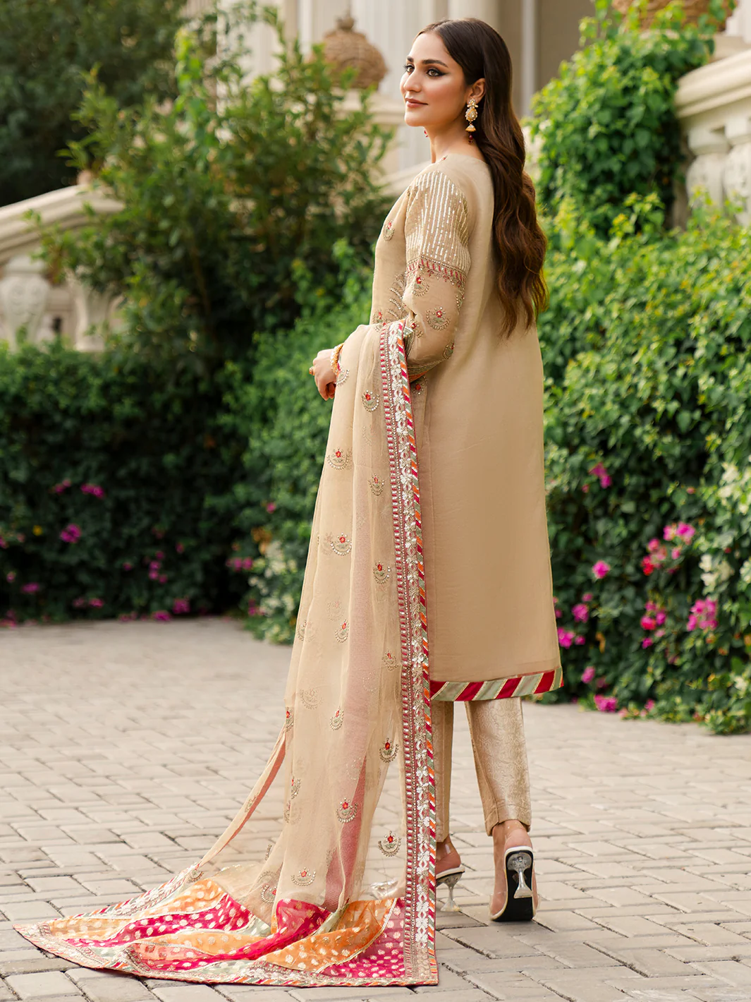 Adelina luxury collection by shah jahan Ready to wear. Our signature Collection-a symphony of opulence and fashion-forward design. Each dress is a masterpiece, meticulously crafted to make you feel regal at any event. Elegance is an only beauty that never fades. Drape your self with gold zari luxury Embroidered dress with a delicate Interplay of 3mm sequence and the shimmering embrace of self Gold tila is a tribute to luminosity. Intricate embroidery featuring enchanting. Adorned delicate adda work on neckline. That reflect on your dreams scape. The contrast of being color of silk border of the shirt.