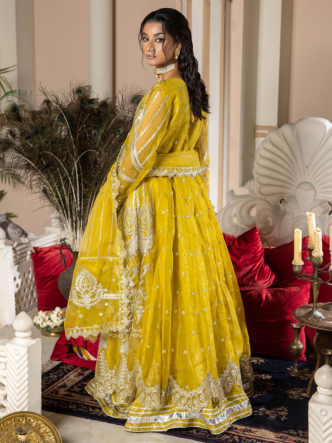 • Shahjahan signature dupatta, featuring matching embroidery along the border on organza.