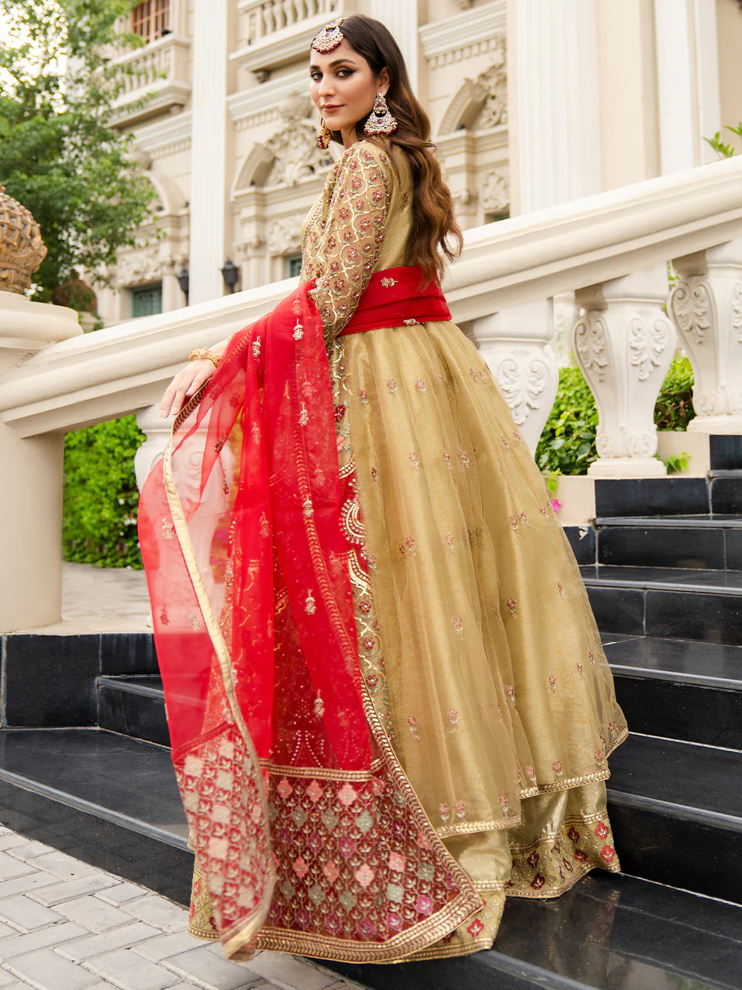 • Shahjahan signature dupatta, featuring matching embroidery along the border on organza .