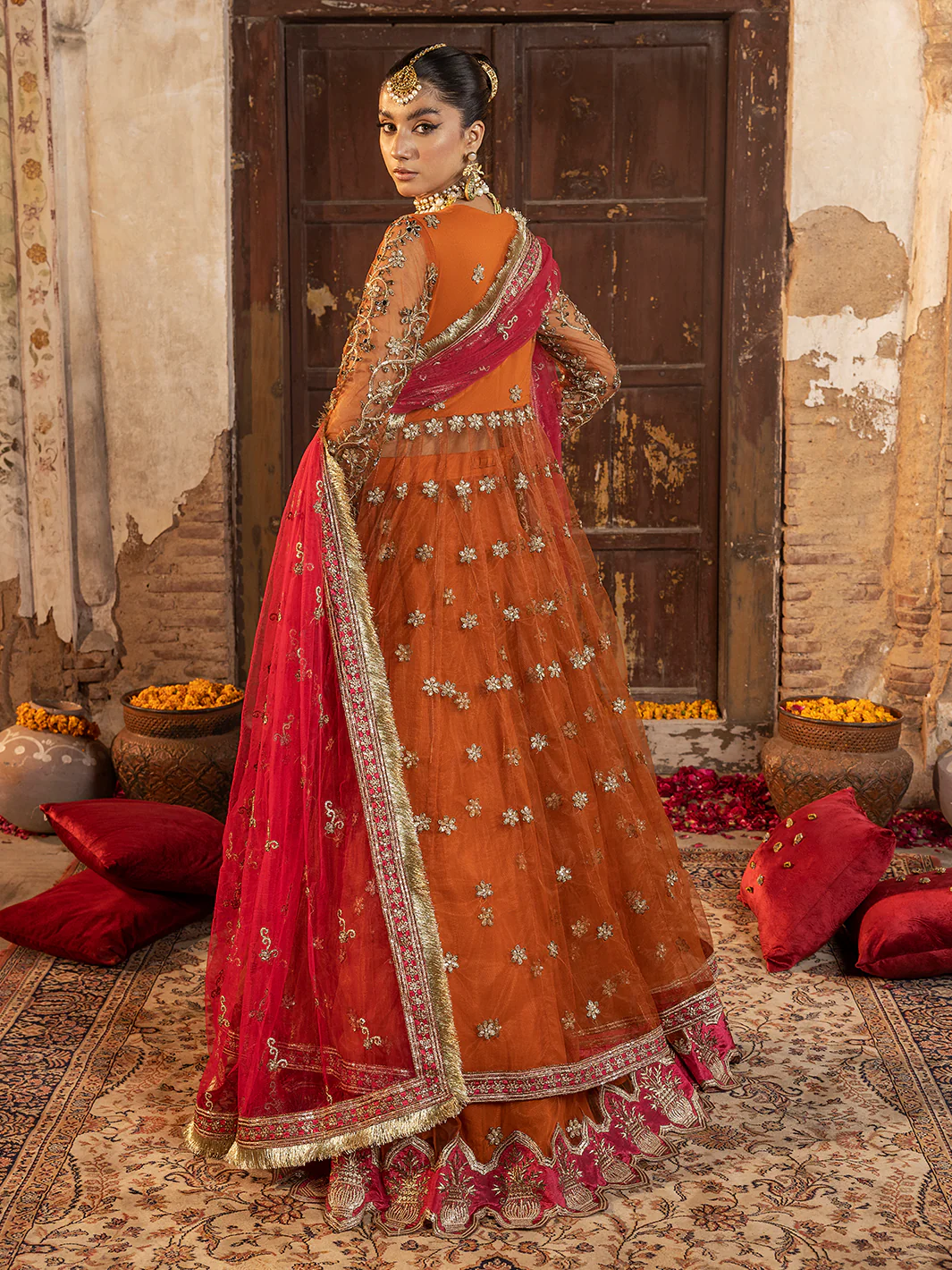 A net lehenga paired with a gown is a contemporary and stylish fusion outfit that combines the traditional charm of a lehenga with the modern silhouette of a gown. The gown can be a sheer overlay with a net skirt or a more structured gown with a net dupatta or cape. The gown can be sleeveless, have full sleeves, or feature a unique neckline. The key is to ensure a seamless blend of the lehenga and gown elements.