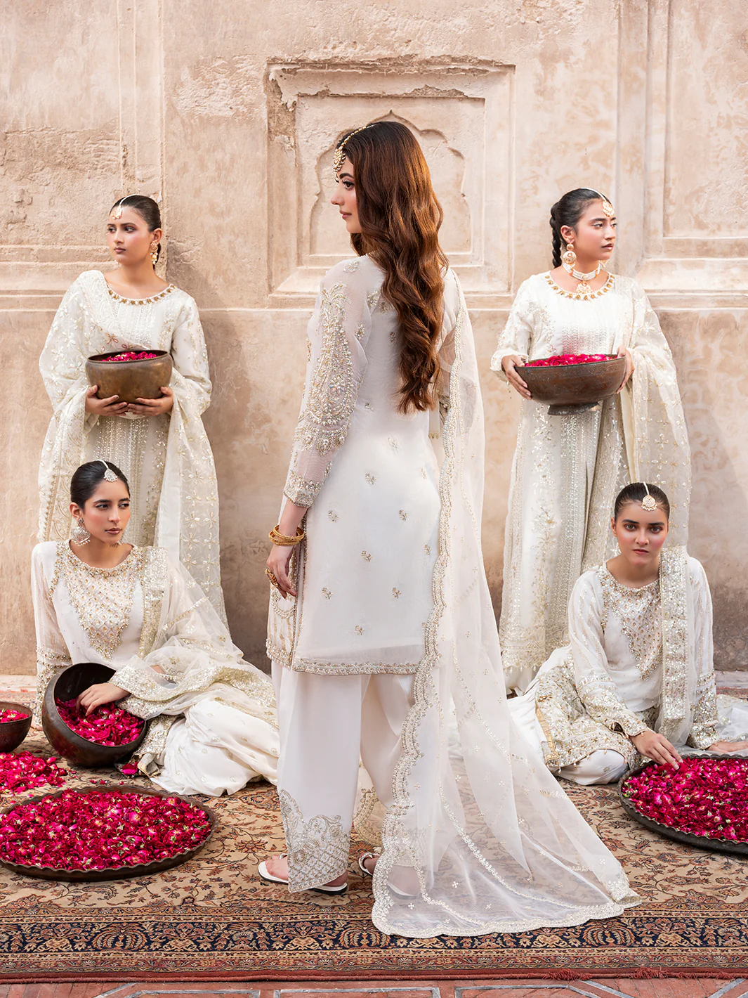 The stunning white shirt with beautiful farshi shalwar modern elegance, featuring exquisite embroidery and gracefully drapped organza dupatta