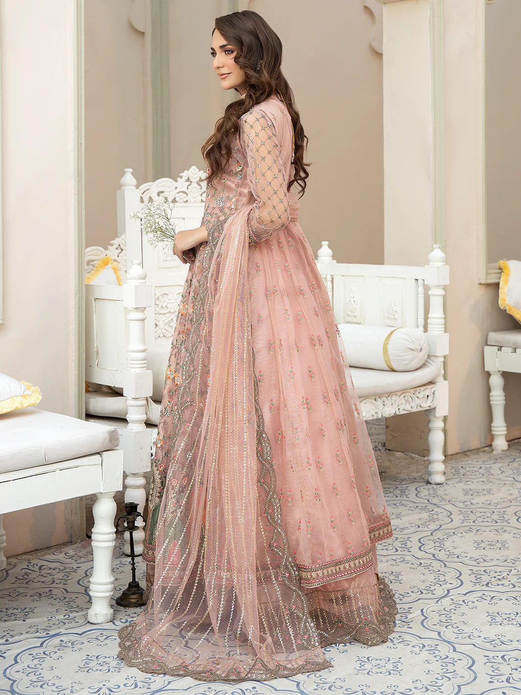 • Embroidered body with adda work on net