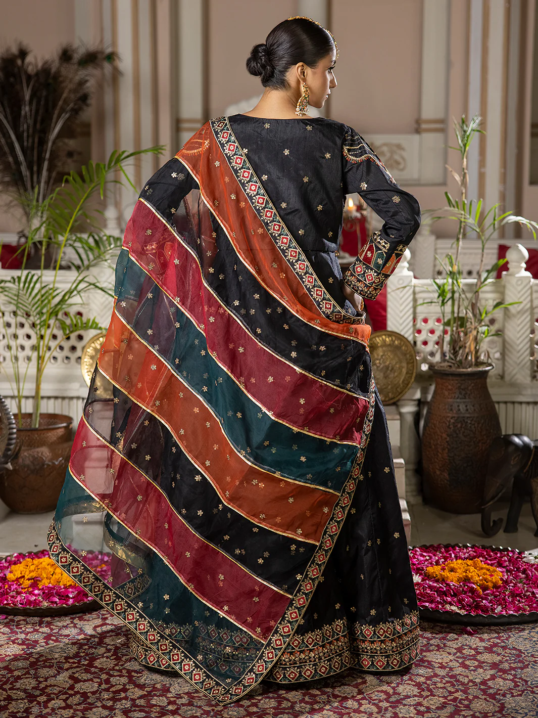 • Embroidered organza multi dupatta with 4 side Border on organza.